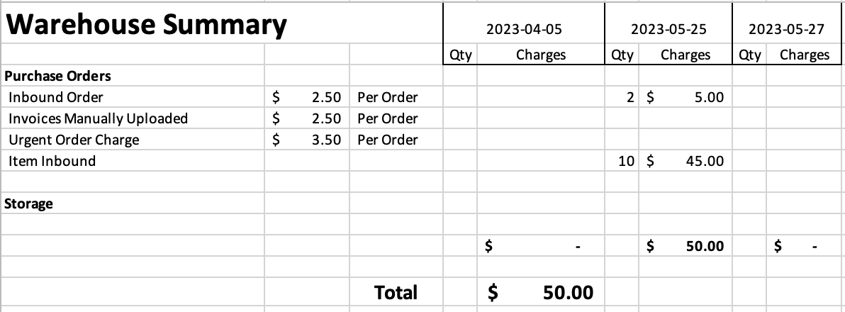 Note that these settings will change the date shown on the Warehouse Summary tab, where it aggregates information by day, as shown below |
