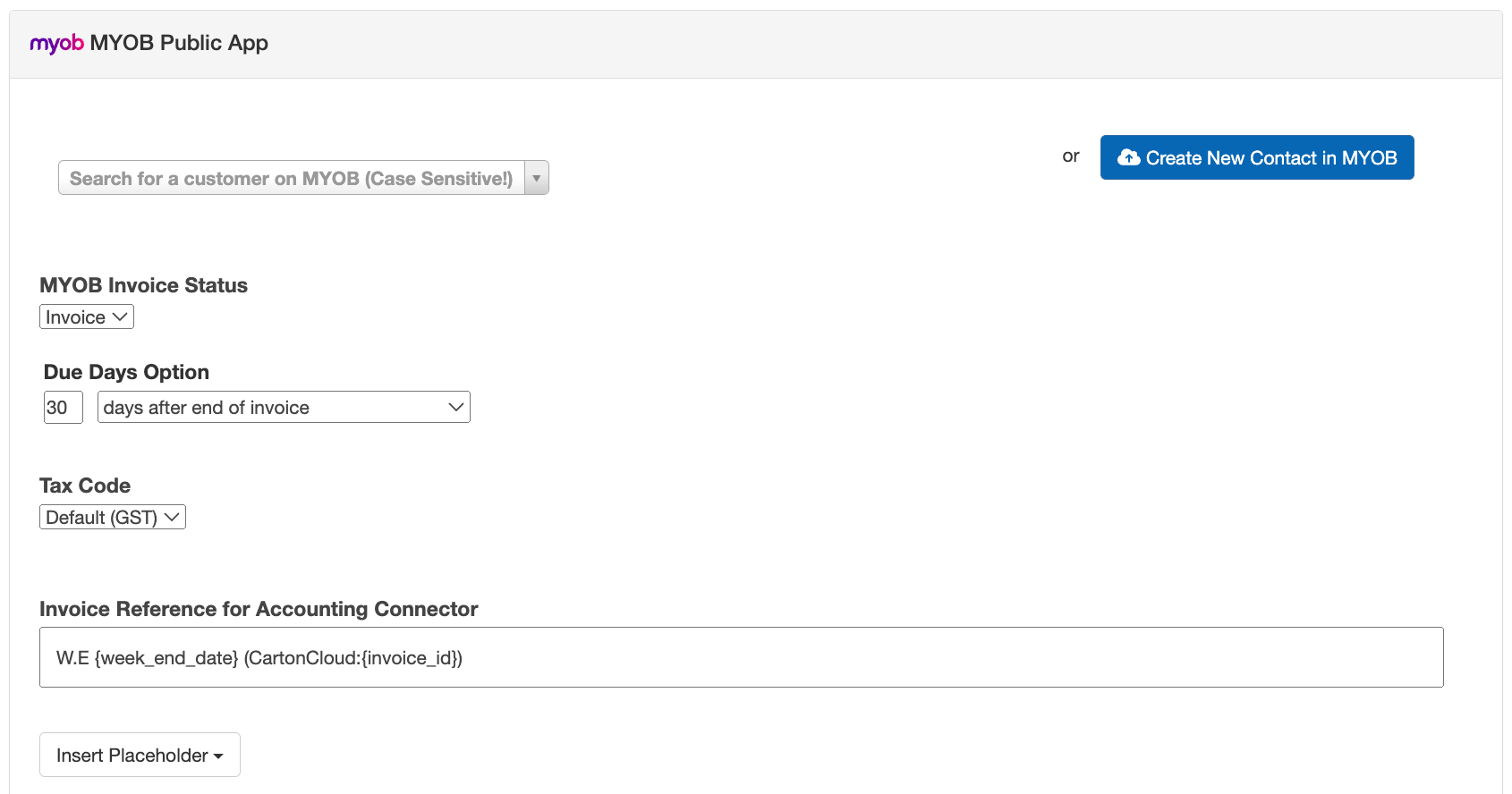 The reference that will populate on the invoice in the Accounting Connector platform. For more information, please click here. |