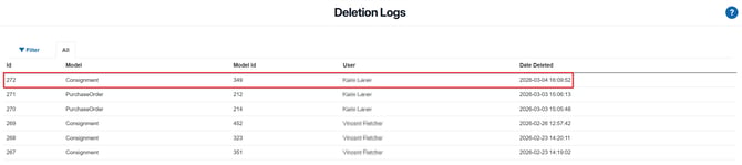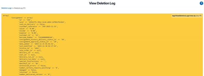 The Deletion Logs allow you to see when a Sale Order, Purchase Order, Consignment, Manifest, Invoice, or Run Sheet has been deleted and who deleted the order.