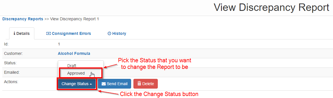 Creating a Discrepancy Report effectively has two steps. The first is to create the actual Discrepancy Report and the second is to add existing Consignment Errors to the Report. To Add a Discrepancy Report: