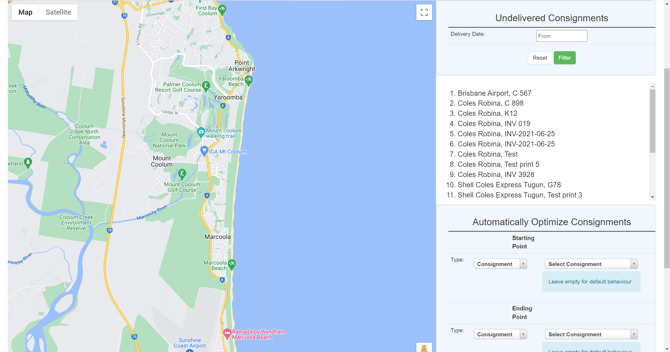 Optimise the route of the driver according to the Consignments allocated to the driver.