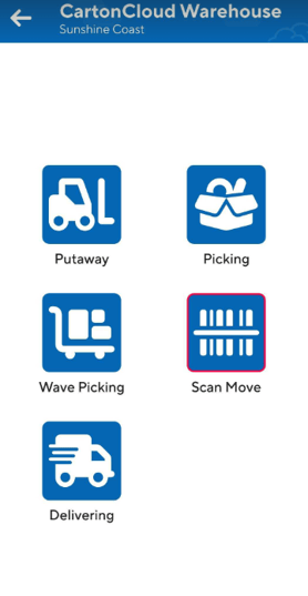 Please note that the Scan Move functionality is only available to mobile app users that have been assigned a Packer role through the CartonCloud web app. Users with only Driver level permission will not be able to access this functionality.