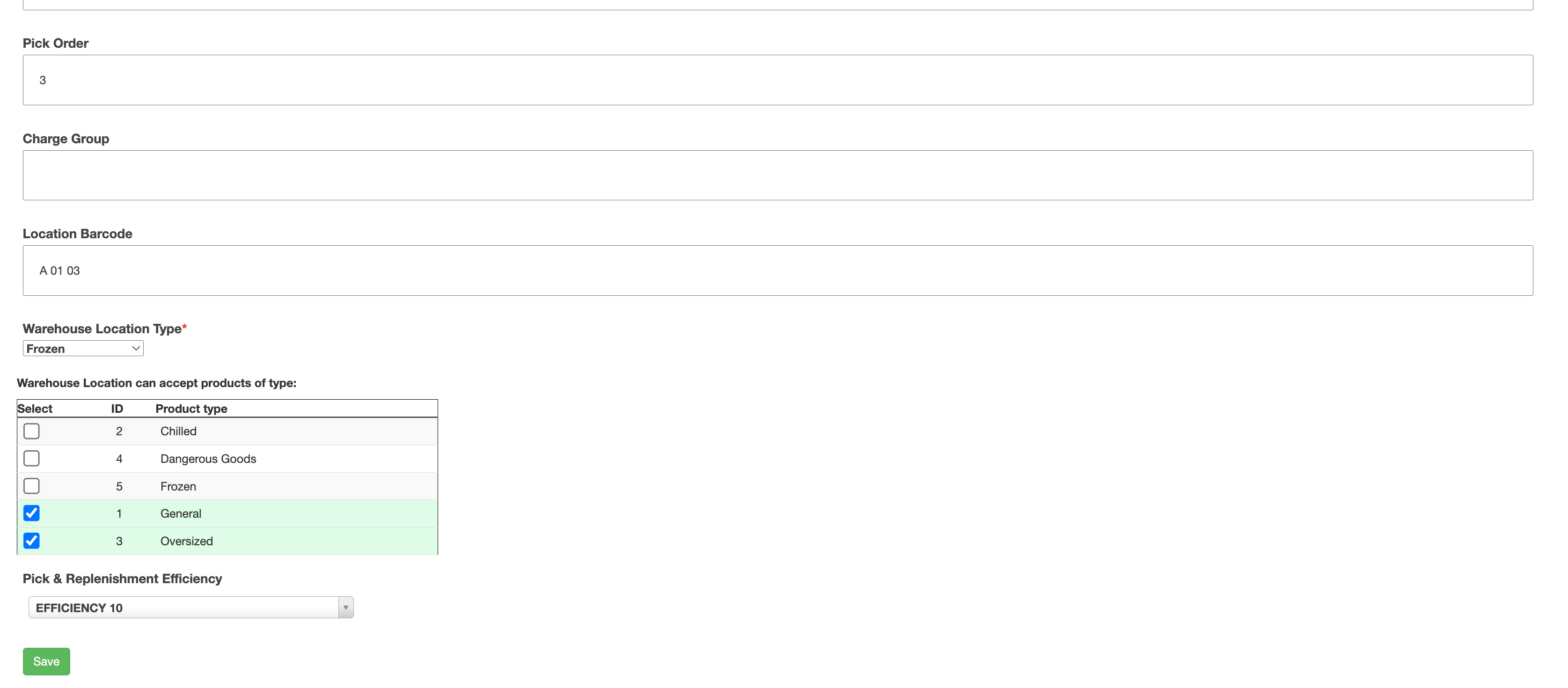 If you want to update the Product type of many Warehouse Locations at once then this can be done quickly through the Edit Warehouse Locations in Bulk feature.