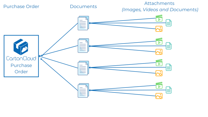 Check out the diagram below for a visual breakdown of how Purchase Orders, Documents, and Attachments are connected.