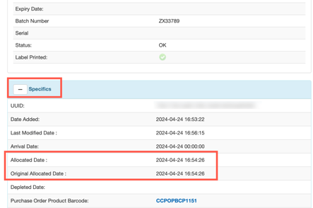 - The Date Packed or Date Dispatched cannot be less than the date the Purchase Order that the stock arrived on is set to.