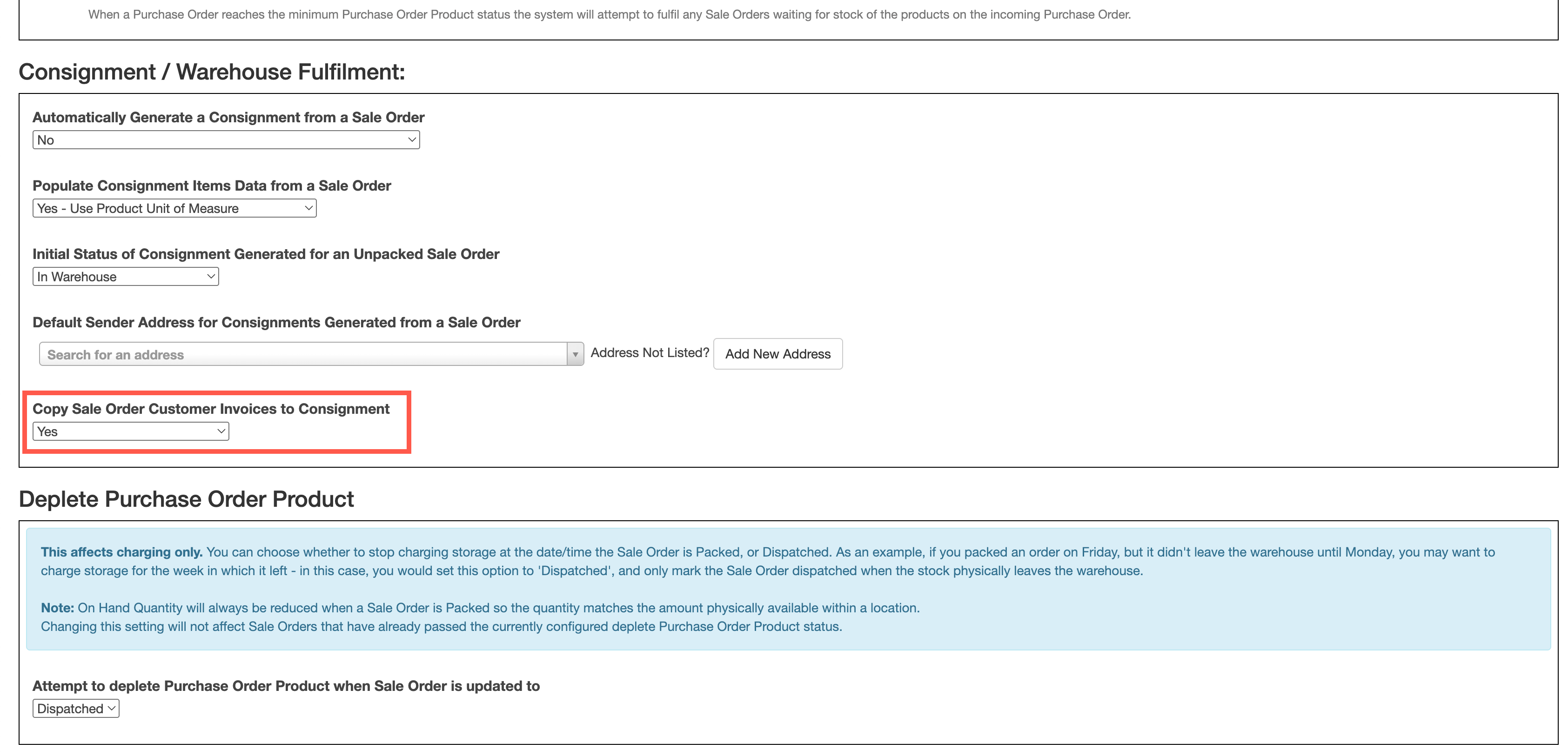 • Then change the setting Copy Sale Order Customer Invoice to Consignment to Yes