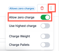 - Enable Allow Zero Charge by clicking the three-dot icon and then Allow zero charge.
