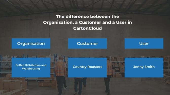 For example, Coffee Distribution and Warehousing has a customer called Country Roasters. Coffee Distribution and Warehousing store the coffee beans for Country Roasters in their warehouse and deliver them to their customers as new orders come in. Country Roasters pay Coffee Distribution for their services; therefore, in CartonCloud, Country Roasters will be added as a Customer.