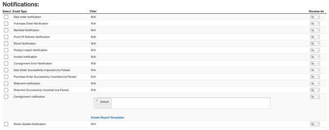 - Customer Notifications that you set up from the Customer Settings. These are email notifications that are sent to your Customers upon specific event milestones in CartonCloud.