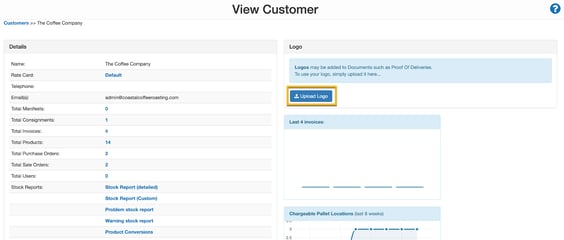 - Click Upload Logo to add a logo against the Customer.
