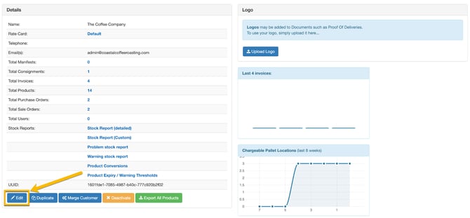 - Staying on the Customer page, select your customer and then scroll down and select Edit.