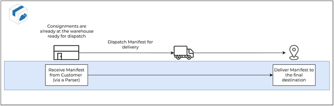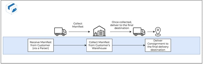 In this example, the Customer has sent through a Manifest of all Consignments that need to be collected from their warehouse. The Manifest will be collected and then delivered in one movement.