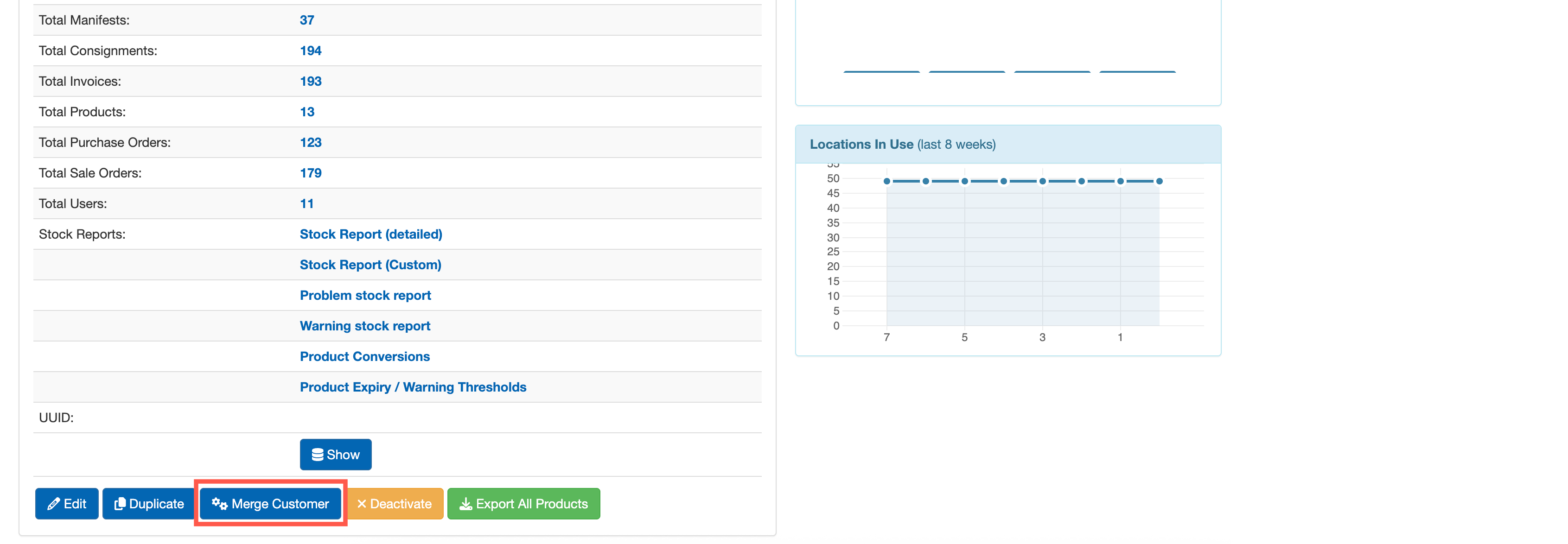 This should be approached with extreme caution, it will merge all records (consignments, invoices, etc). And is an irreversible operation.