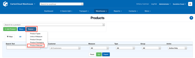 • From the Related drop down menu select Product Stauses.