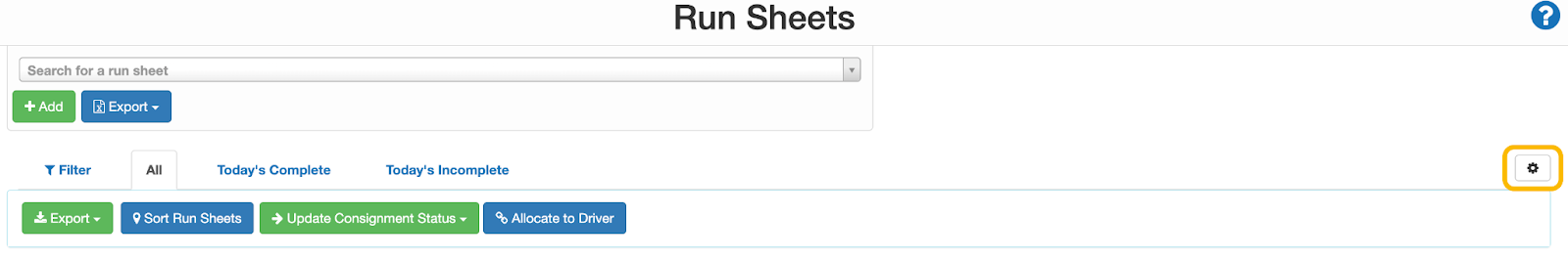 Using the configuration button, you can choose what headings and data you want to see on the Run Sheets list view.