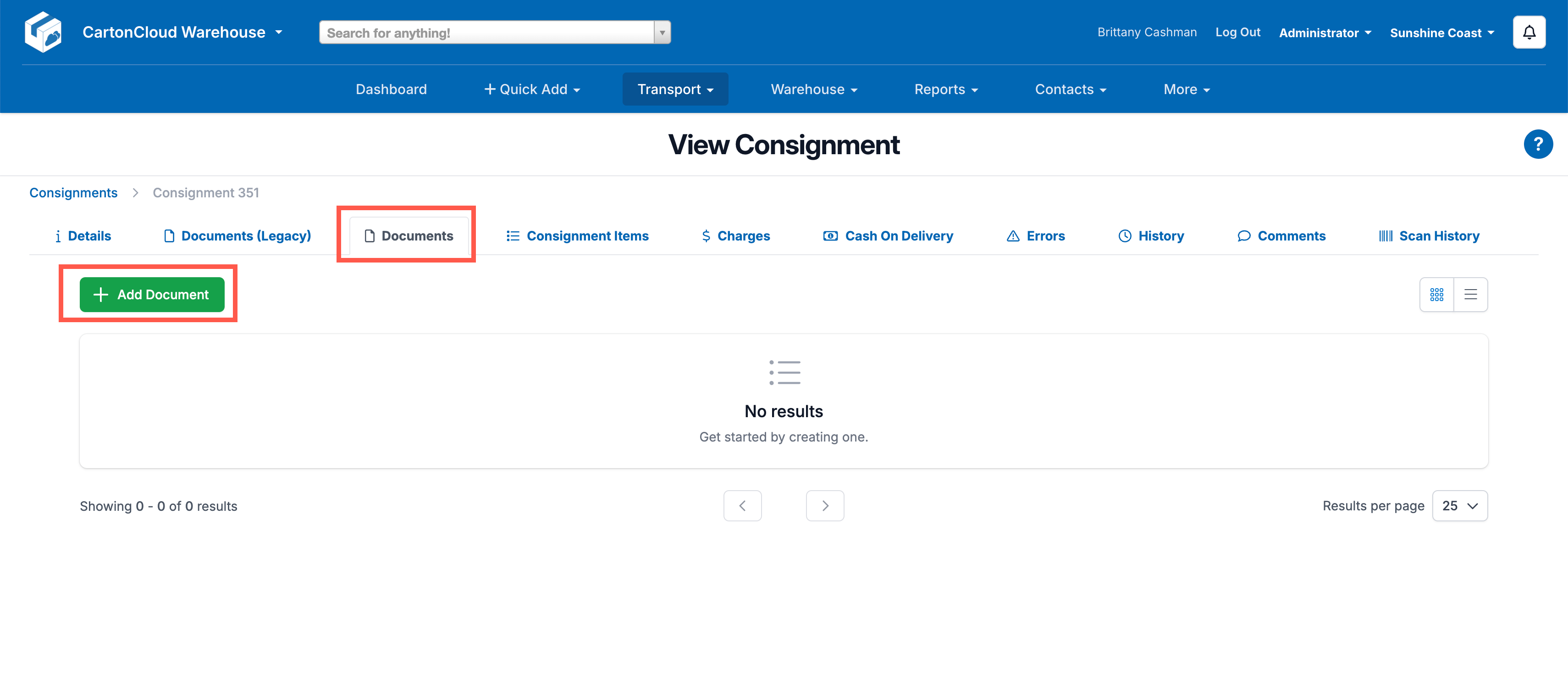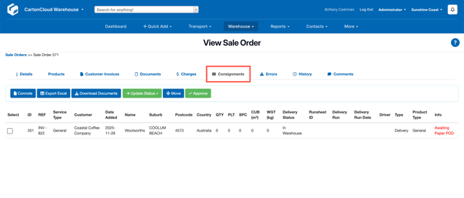 - Navigate to the Consignments tab and click on the linked Consignment.